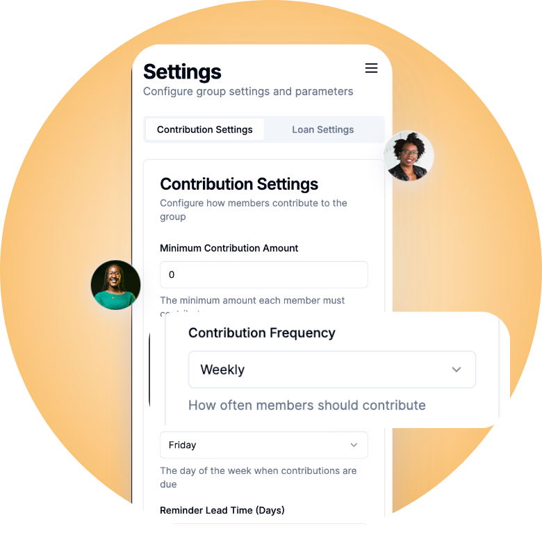 Set your group’s rules once — contributions, loan limits, interest, reminders, penalties. Thamani enforces them consistently using AI, sends smart reminders, tracks trends, and keeps everyone accountable without awkward follow-ups.