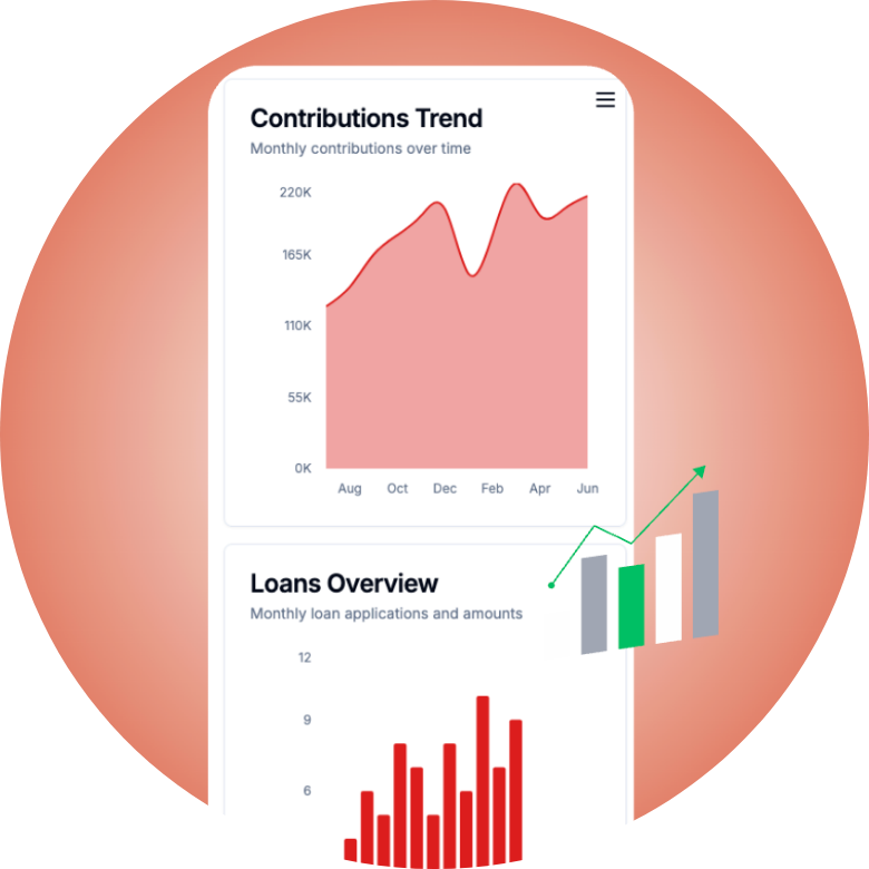 From real-time dashboards to downloadable reports, Thamani gives instant visibility into transactions, contributions, loans, and member activity — restoring trust through clarity.